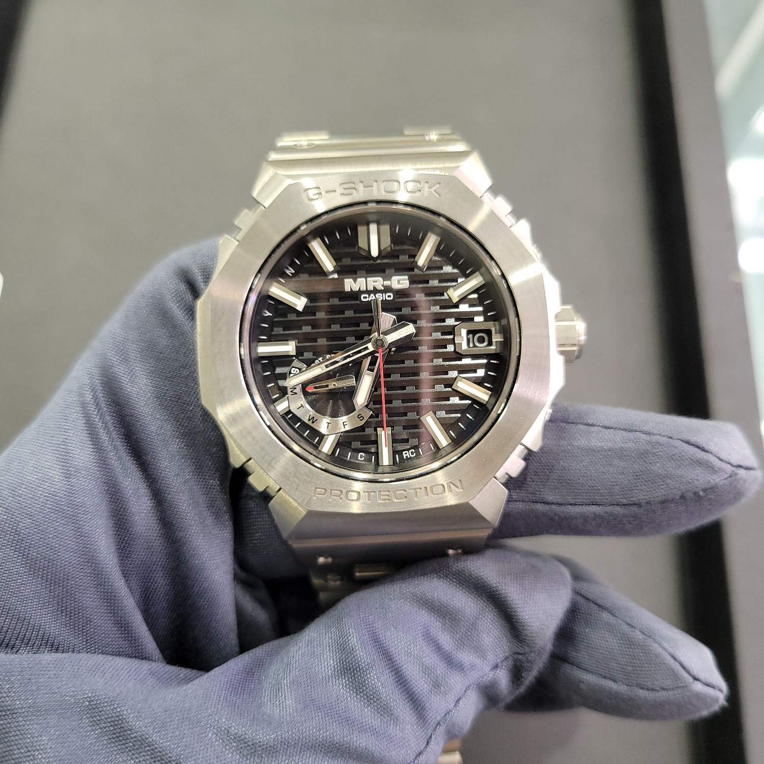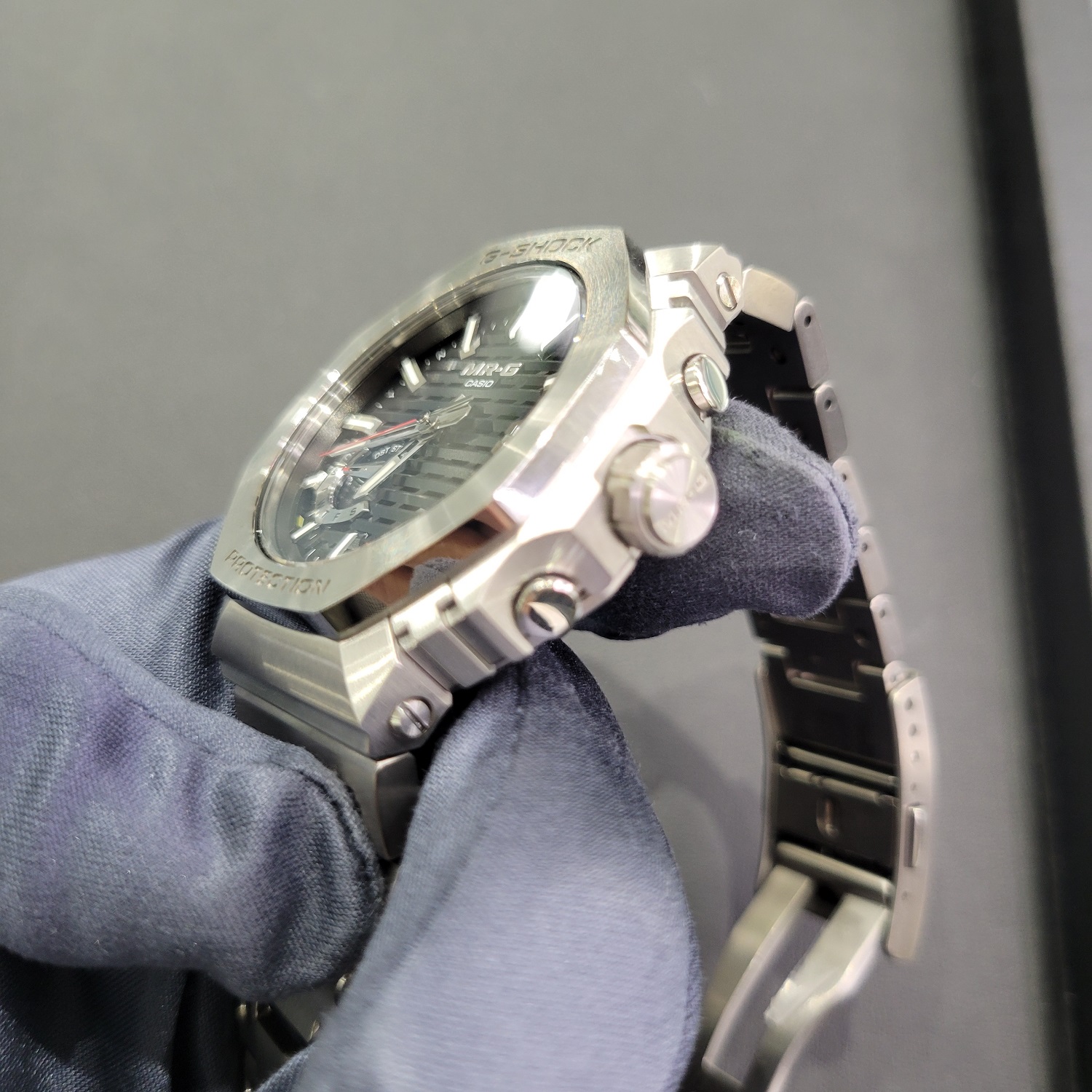 新世代 スクエア デザイン。1983年に誕生した G-SHOCK 初号機 DW-5000C。その象徴である スクエアデザインを、新たな耐衝撃構造により フルメタル化し、スマートフォンリンクを はじめとした先進機能を搭載。 唯一無二のタフネスウオッチ。原点と進化が、ここにある 仕様・機能 耐衝撃構造(ショックレジスト) スクリューバック 無機ガラス 20気圧防水 ケース・ベゼル材質: ステンレススチール 無垢バンド ワンプッシュ三つ折れ式中留 メタルバンド(ステンレススチール) タフソーラー(ソーラー充電システム) 電波受信機能:自動受信(最大6回/日)(中国電波は最大5回/日)/手動受信、 <日本>受信電波:JJY、周波数:40kHz/60kHz(福島/九州両局対応モデル) <北米地域>受信電波:WWVB、周波数:60kHz <ヨーロッパ地域>受信電波:MSF/DCF77、周波数:60kHz/77.5kHz <中国>受信電波:BPC、周波数:68.5kHz *ホームタイム設定を受信可能な都市に設定すると、都市に合わせた局を受信します。尚、時差は選択した都市によって設定されます。 モバイルリンク機能(対応携帯電話とのBluetooth?通信による機能連動) ワールドタイム5本:世界39都市(39タイムゾーン、サマータイム自動設定機能付き)+UTC(協定世界時)の時刻表示、ホームタイムの時刻入替機能付き ストップウオッチ(1/100秒(1時間未満)/1秒(1時間以上)、24時間計、スプリット付き) タイマー(セット単位:1秒、最大セット:24時間、1秒単位で計測) 時刻アラーム5本(1本のみスヌーズ機能付き)・時報 バッテリー充電警告機能 パワーセービング機能(暗所では一定時間が経過すると表示を消し節電します) フルオートカレンダー 12/24時間制表示切替 操作音ON/OFF切替機能 日付表示(月/日表示入替) 曜日表示(英・西・仏・独・伊・露の6ヵ国語切替) LEDバックライト(フルオートライト、スーパーイルミネーター、フェードイン・フェードアウト、残照機能、残照時間切替(2秒/4秒)付き) フル充電時からソーラー発電無しの状態での駆動時間 機能使用の場合:約10ヵ月 パワーセービング状態の場合:約22ヵ月 ホームタイム都市(受信機能対応都市)/受信電波 東京/日本の標準電波JJY40・JJY60 ロサンゼルス、デンバー、シカゴ、ニューヨーク、ハリファックス/アメリカの標準電波WWVB ロンドン、パリ、アテネ/イギリスの標準電波MSF・ドイツの標準電波DCF77 香港/中国の標準電波BPC ※ 電波受信が行われない場合や、スマートフォンと連携しない場合は、通常のクオーツ精度(平均月差±15秒)で動作します。 LED:ホワイト サイズ・質量 ケースサイズ (H×W×D): 49.3×43.2×13mm 質量: 167g