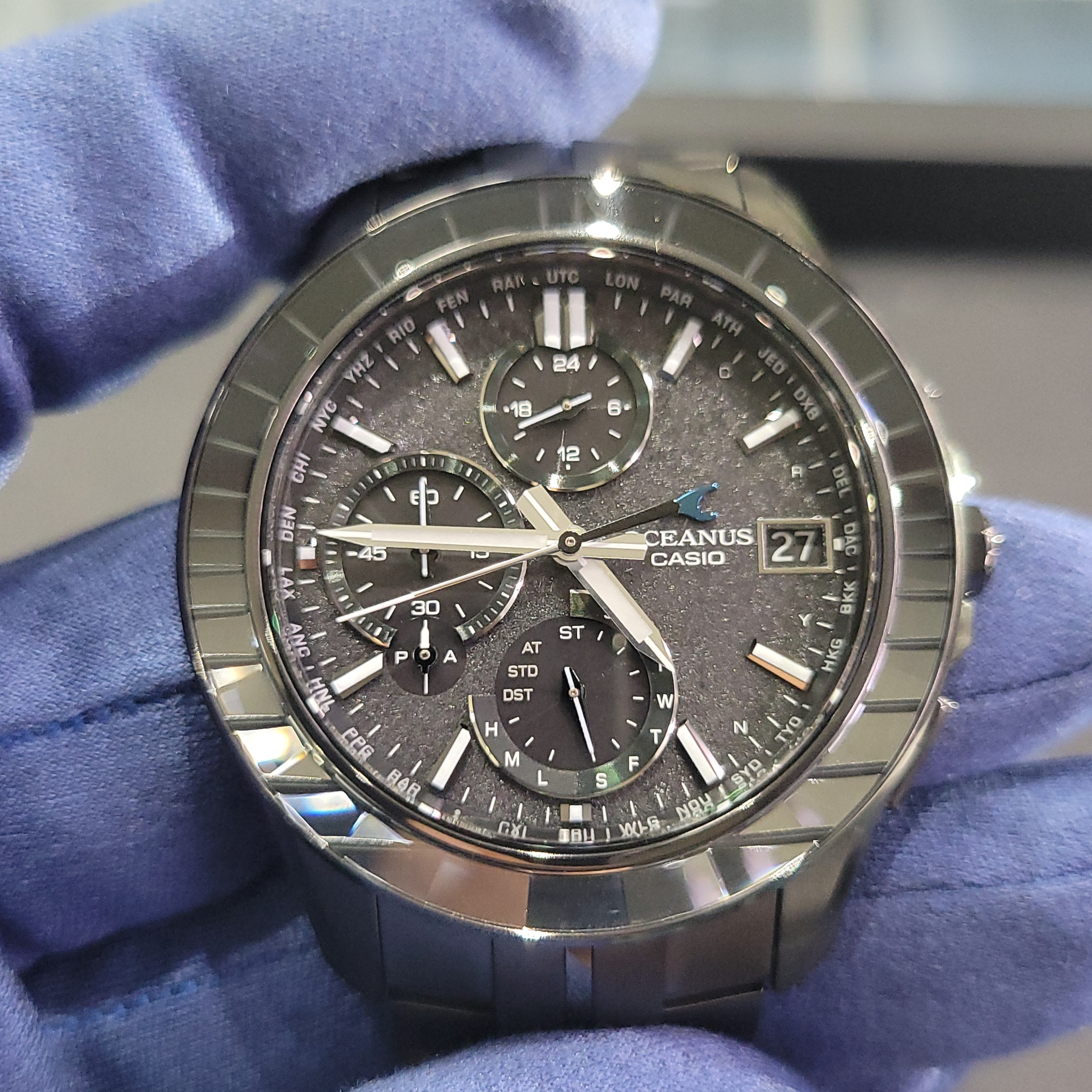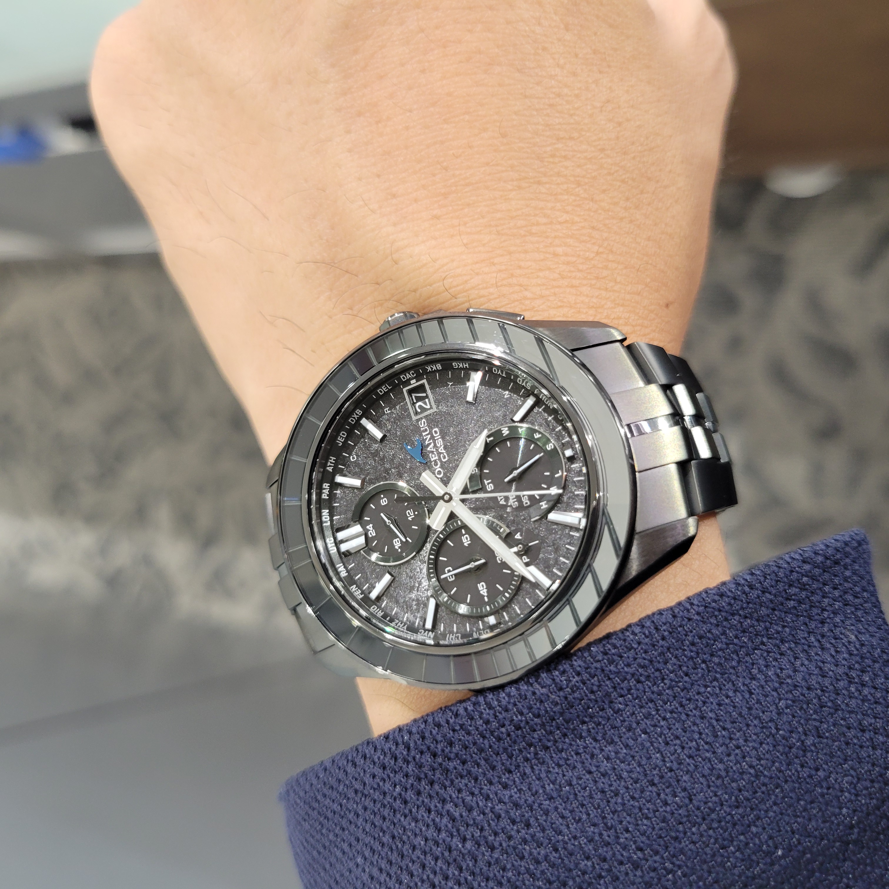 ケースサイズ(縦×横×厚さ)47.5 × 43 × 11.7 mm 質量99 g ケース・ベゼル材質 チタン/サファイアガラス サファイアガラスベゼル バンド メタルバンド(チタンムクバンド) スライドアジャスト機構付きワンプッシュ三つ折れ式中留 防水性 10気圧防水 時刻修正 電波時計 日本・北米・ヨーロッパ・中国地域対応 MULTIBAND6 Bluetooth:スマートフォンと接続し時刻を自動修正 使用電源・電池寿命 ガリウムタフソーラー